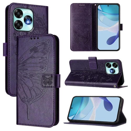 Funda de Cuero Umidigi Bison X20 con Diseño de Mariposa en Relieve (Morado Oscuro)