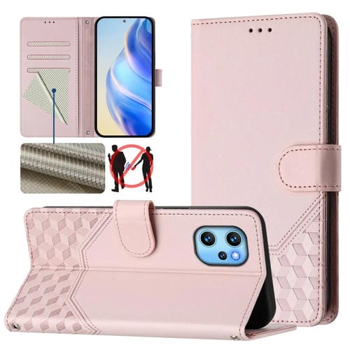 Funda de Cuero Rfid con Relieve en Panal para Umidigi Power 7/7S (Rosa)