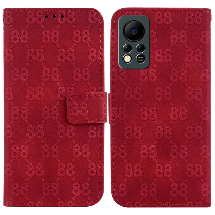 Estuche para Infinix Hot 12 de Cuero en Relieve con Doble Forma de 8 (Rojo)