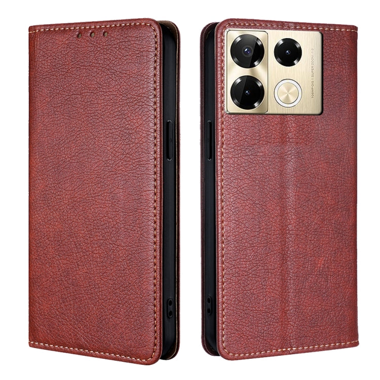 Estuche para Infinix Note 40 Pro 4G de Cuero Magnético con Aceite Brillante (Marrón)