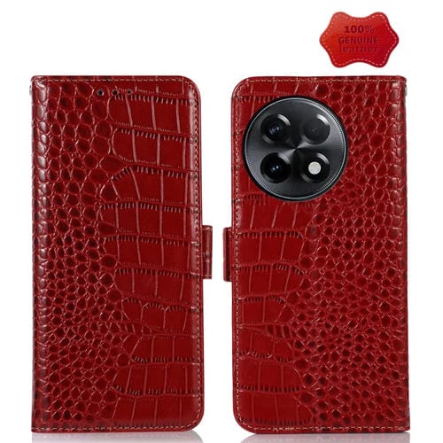Estuche para OnePlus Ace 2 5G de Cuero de Vaca con Capa Superior de Cocodrilo (Rojo)