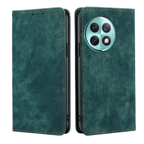 Estuche para OnePlus Ace 2 Pro Rfid de Cuero Magnético con Cepillo Antirrobo (Verde)