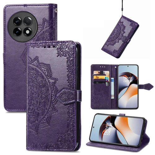 Estuche para OnePlus Ace 2 Mandala Flower de Cuero En Relieve (Púrpura)