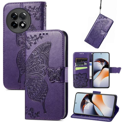 Estuche para OnePlus Ace 2 Butterfly Love Flower de Cuero en Relieve (Púrpura)