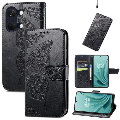 Estuche para OnePlus Ace 2V Cuero en Relieve Butterfly Love Flower (Negro)