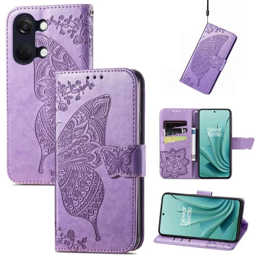 Estuche para OnePlus Ace 2V Butterfly Love Flower de Cuero en Relieve (Púrpura Claro)