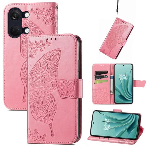 Estuche para OnePlus Ace 2V Butterfly Love Flower de Cuero en Relieve (Rosa)