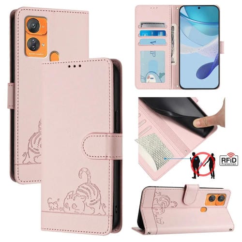 Estuche para Oukitel C33 Cat Rat de Cuero RFID con Patrón en Relieve y Cordón (Rosa)