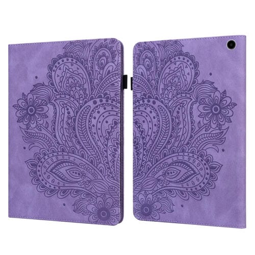 Estuche para Tableta Amazon Fire Max 11 Cuero con Pavo Real en Relieve (Púrpura)