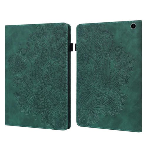 Estuche para Tablet Amazon Fire Max 11 Cuero Estampado Pavo Real en Relieve (Verde)