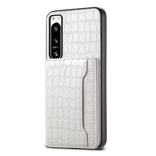 Estuche para Sony Xperia 5 IV con Diseño Bolsa para Tarjetas Textura Cocodrilo (Blanco)