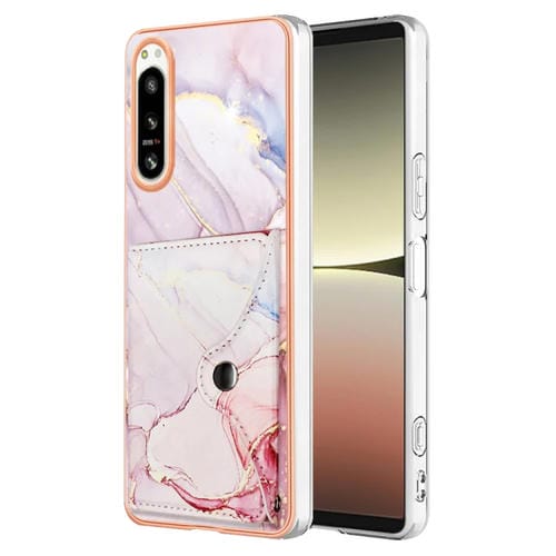 Estuche para Sony Xperia 5 IV con Ranura para Tarjeta y Patrón Mármol (Oro Rosa)