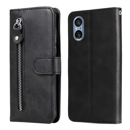 Estuche para Sony Xperia 5 V de Cuero con Cremallera y Textura de Becerro (Negro)