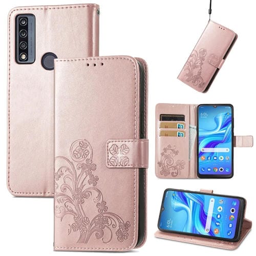 Estuche para TCL 40R de Cuero con Hebilla en Relieve y Cierre de Cuatro Hojas (Oro Rosa)