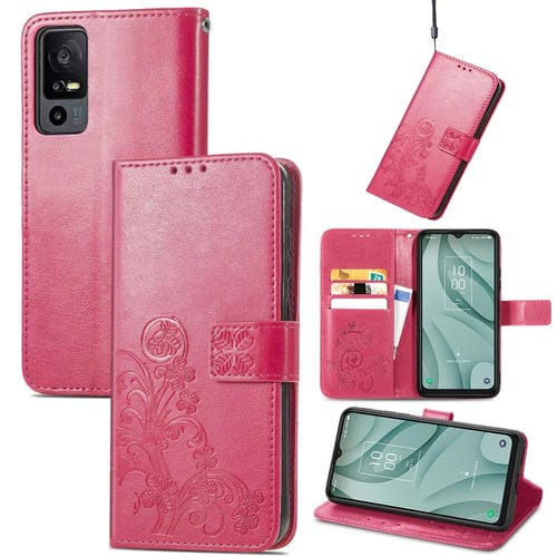 Estuche para TCL 40R de Cuero con Hebilla en Relieve y Cierre de Cuatro Hojas (Rosa)