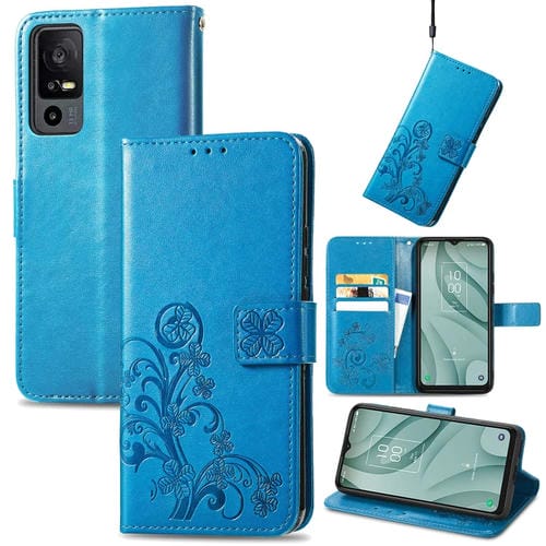 Estuche para TCL 40R de Cuero con Hebilla en Relieve y Cierre de Cuatro Hojas (Azul)