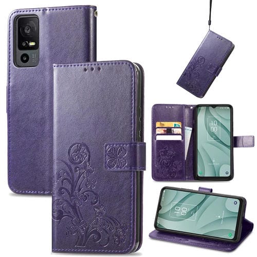 Estuche para TCL 40R de Cuero con Hebilla en Relieve y Cierre de Cuatro Hojas (Púrpura)