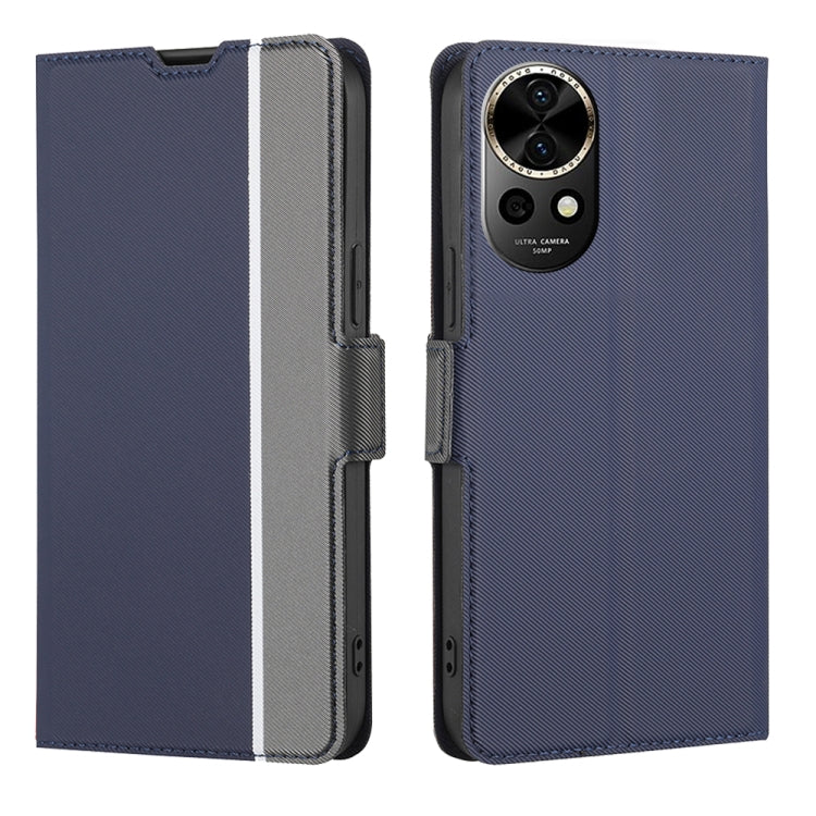 Funda de Cuero para Huawei Nova 12 5G con Botón Lateral y Textura de Sarga (Azul)
