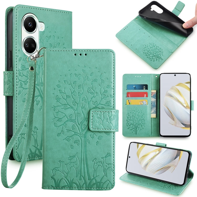 Funda para Huawei Nova 10 Se de Cuero con Relieve de Árbol y Ciervo (Verde)