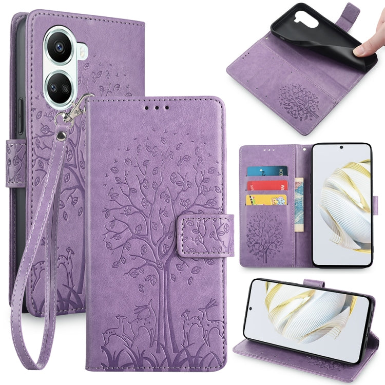 Funda de Cuero para Huawei Nova 10 Se con Relieve de Árbol y Ciervo (Púrpura)