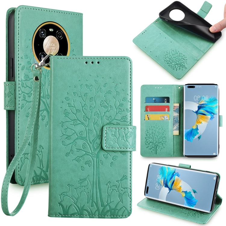 Funda de Cuero Huawei Mate 40 Pro con Relieve de Árbol y Ciervo (Verde)
