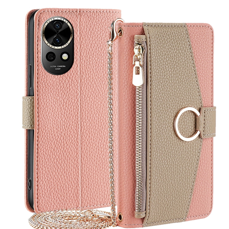 Funda Cruzada de Cuero para Huawei Nova 12 5G con Textura Litchi (Rosa)