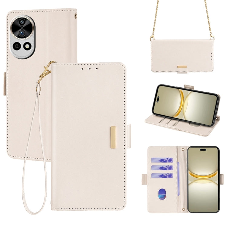 Funda de Cuero con Cadena Cruzada para Huawei Nova 12 Pro / 12 Ultra (Blanco)