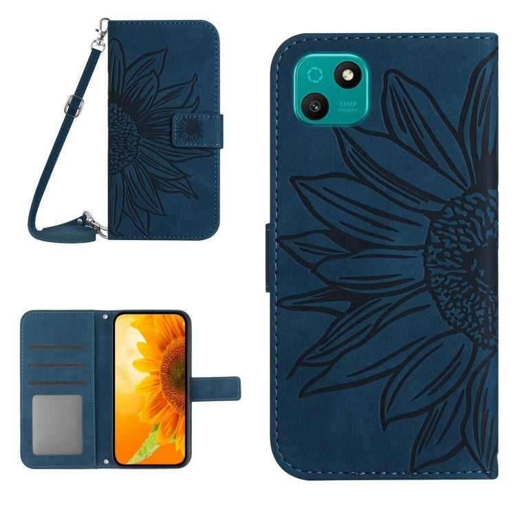 Funda Flip de Cuero para Sharp Aquos Wish con Patrón Sun Flower y Cordón (Azul Tinta)
