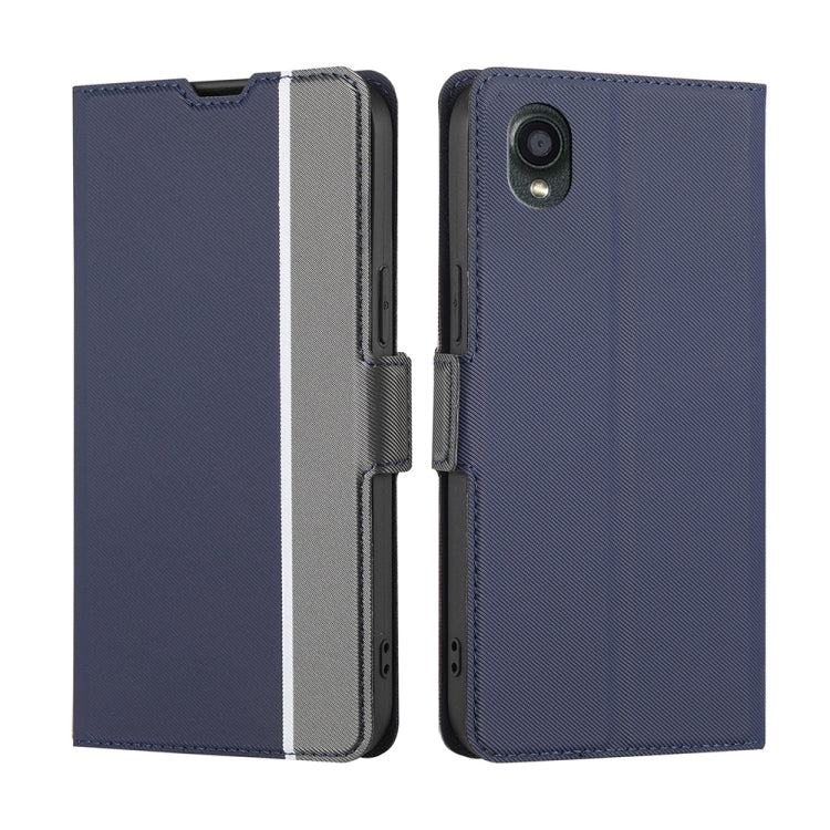Funda de Cuero Kyocera Digno Bx2 Sx2 A101Kc Textura Sarga Hebilla Lateral (Azul)