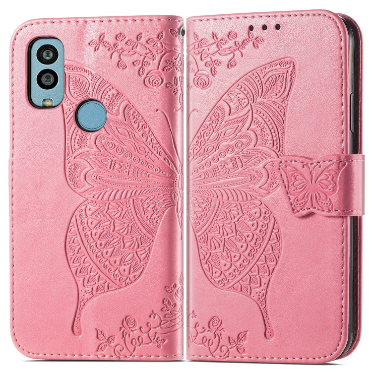 Funda para Kyocera Android One S10 Butterfly Love Flower en Cuero Relieve (Rosa)