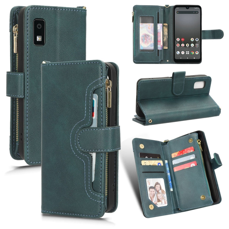 Funda de Cuero para Sharp Aquos Wish 3 con Textura Litchi y Cremallera (Verde)