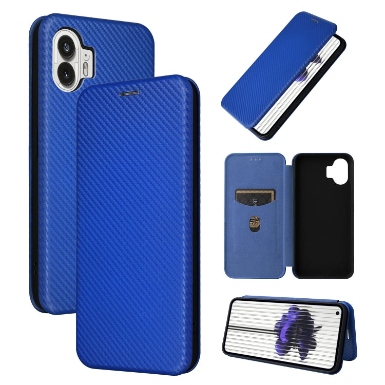 Funda de Cuero For Nothing Phone 2 con Tapa Textura Fibra de Carbono (Azul)