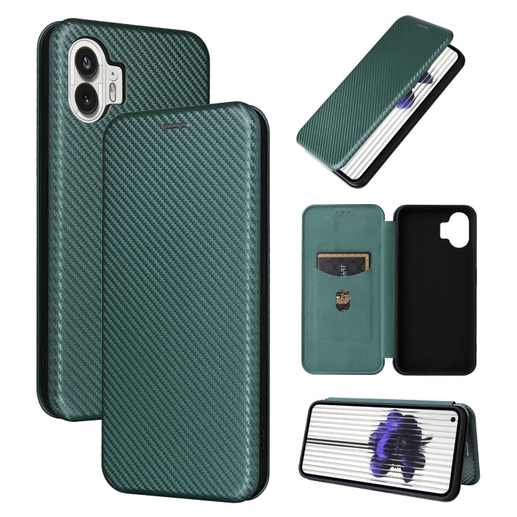 Funda de Cuero For Nothing Phone 2 con Tapa de Fibra de Carbono (Verde)
