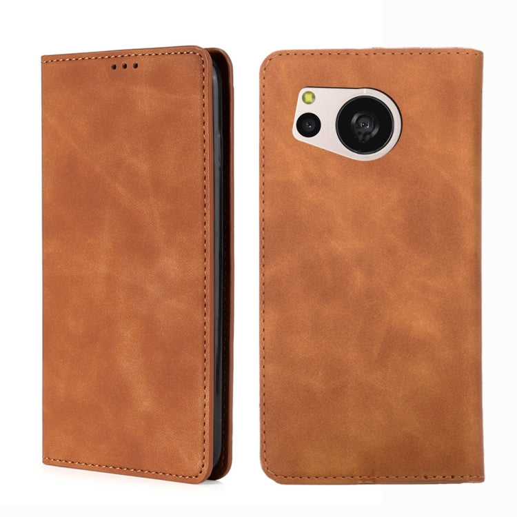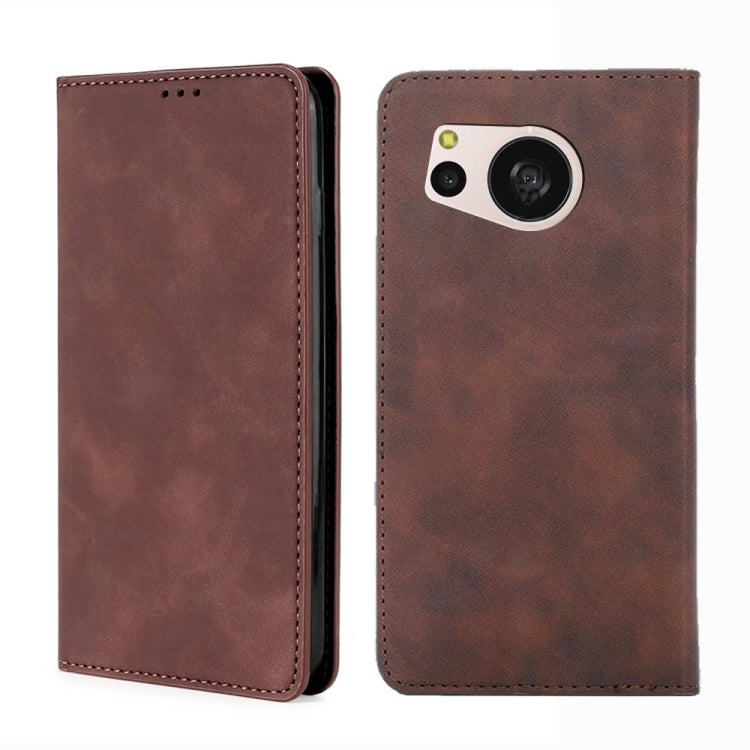 Funda de Cuero Magnética para Sharp Aquos Sense 8 Skin Feel (Marrón Oscuro)