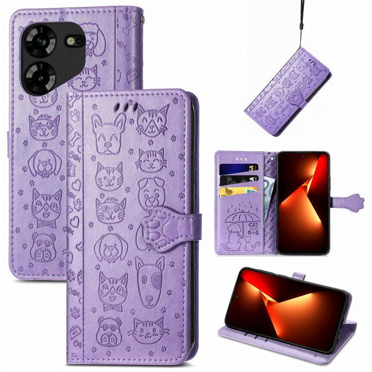 Funda para Teléfono Tecno Pova 5 4G Cuero Relieve Perros y Gatos (Púrpura)