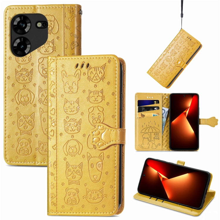 Funda para Teléfono Tecno Pova 5 4G Cuero con Relieve Perros y Gatos (Amarillo)