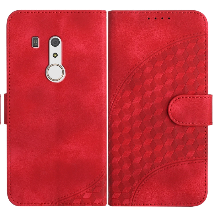 Funda de Cuero para Fujitsu Arrows Be3 Yx0060 con Relieve Elefante y Cordón (Rojo)
