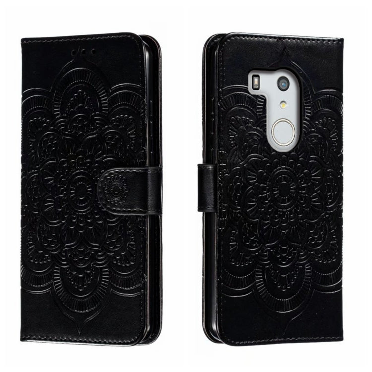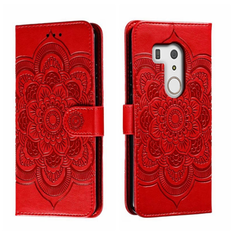 Funda de Cuero para Fujitsu Arrows U Sun Mandala con Patrón en Relieve (Rojo)