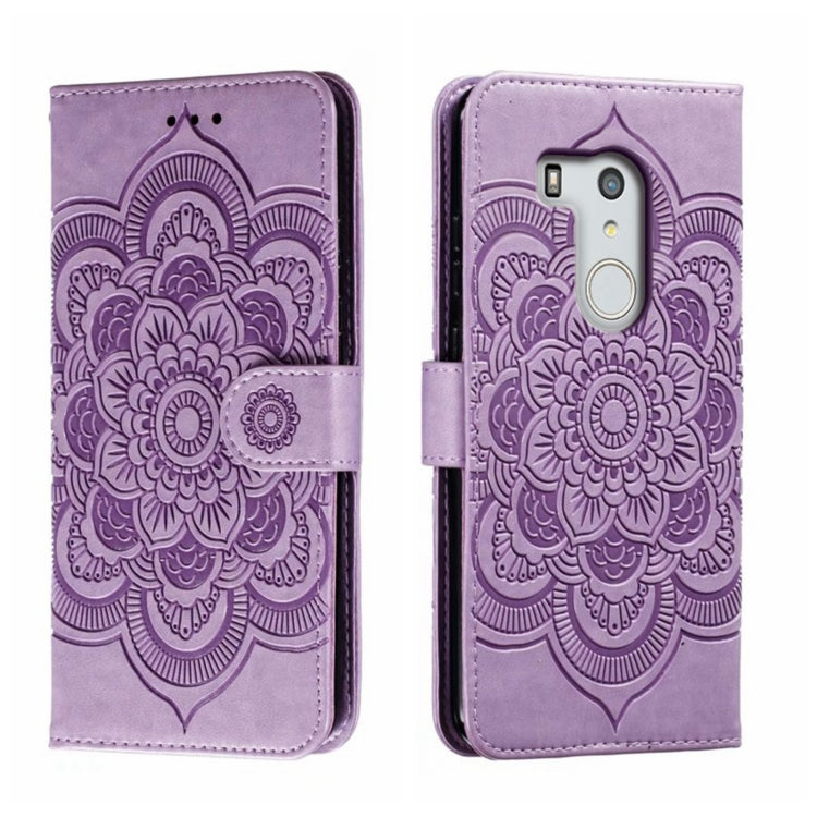 Funda de Cuero para Fujitsu Arrows U Sun Mandala con Patrón en Relieve (Púrpura)