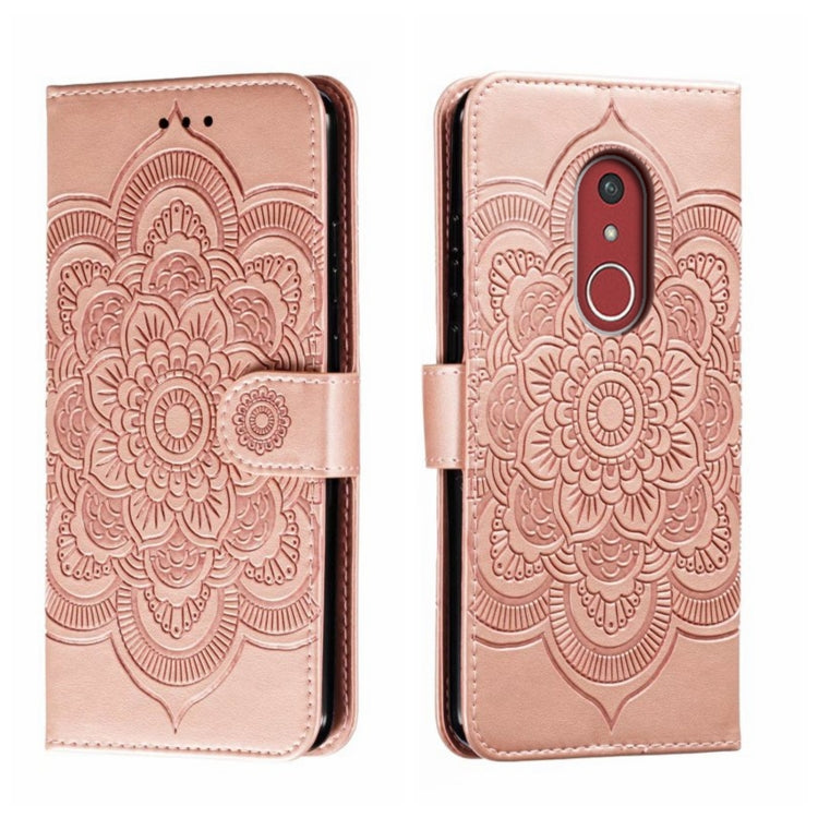 Funda de Cuero para Rakuten Hand 5G con Patrón Sun Mandala en Relieve (Oro Rosa)