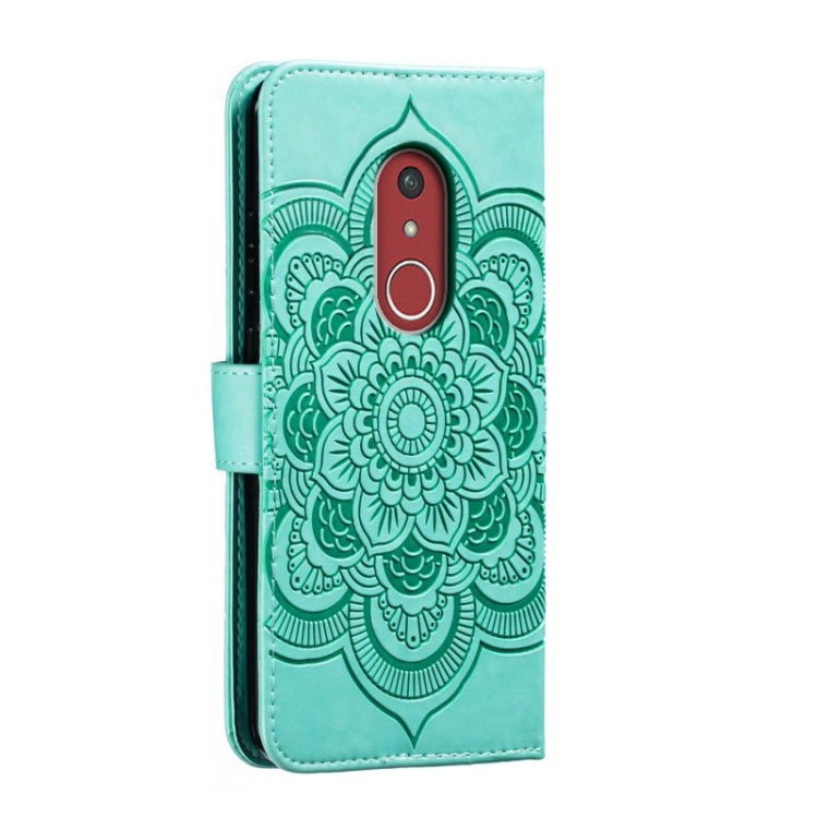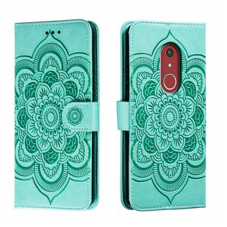 Funda de Cuero para Fujitsu Arrows U Sun Mandala con Patrón en Relieve (Verde)