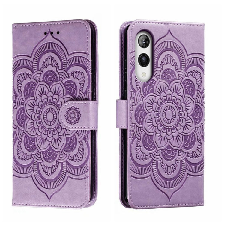 Funda de Cuero Rakuten Hand 5G Sun Mandala con Patrón En Relieve (Púrpura)