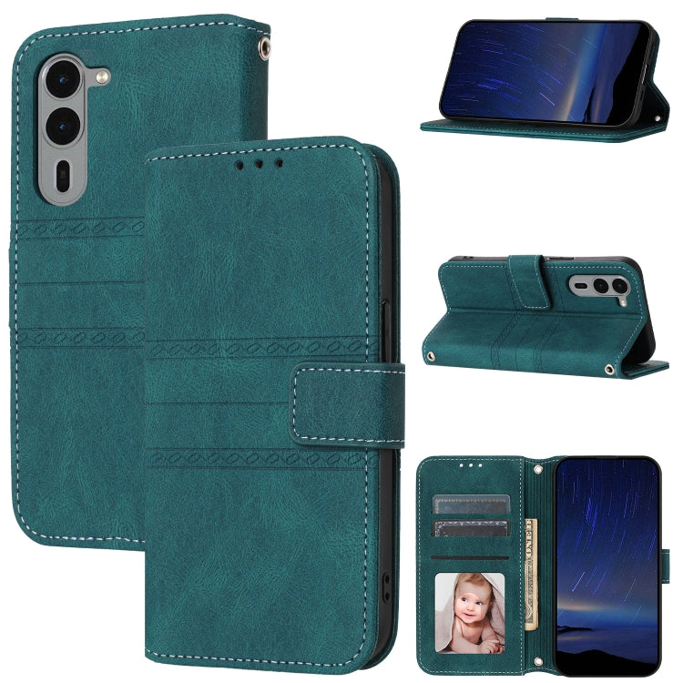 Funda de Cuero para Fujitsu Arrows F-51E We2 Plus con Rayas En Relieve (Verde Oscuro)