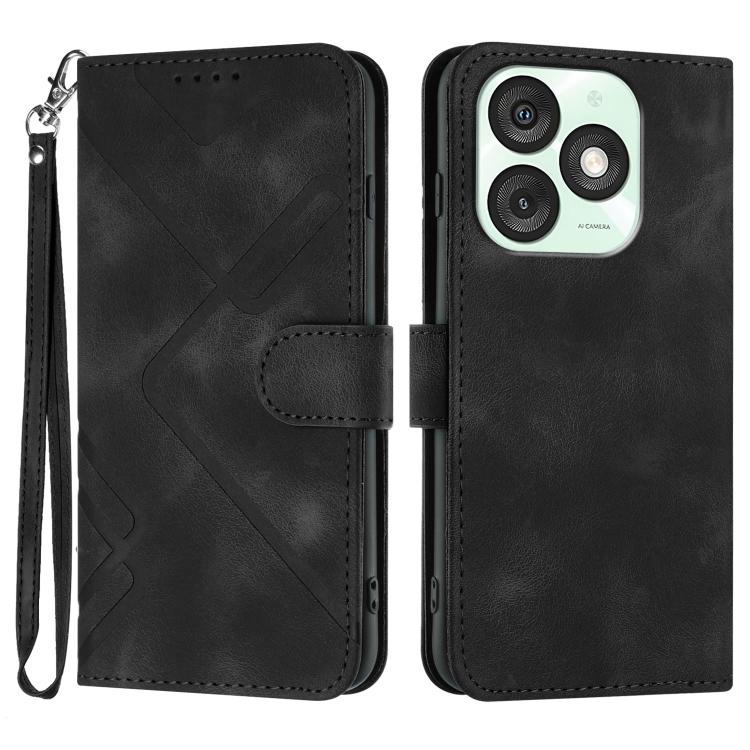 Funda de Cuero para Teléfono Itel A50 con Diseño de Líneas y Tacto Suave (Negra)