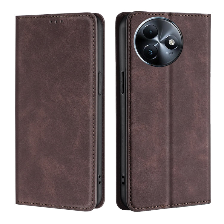 Funda de Piel Magnética para Teléfono Itel S24 4G (Marrón Oscuro) con Tacto de Piel
