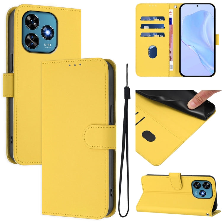 Funda de Piel Sintética con Cordón para Teléfono Oukitel C51 (Amarillo Limón)