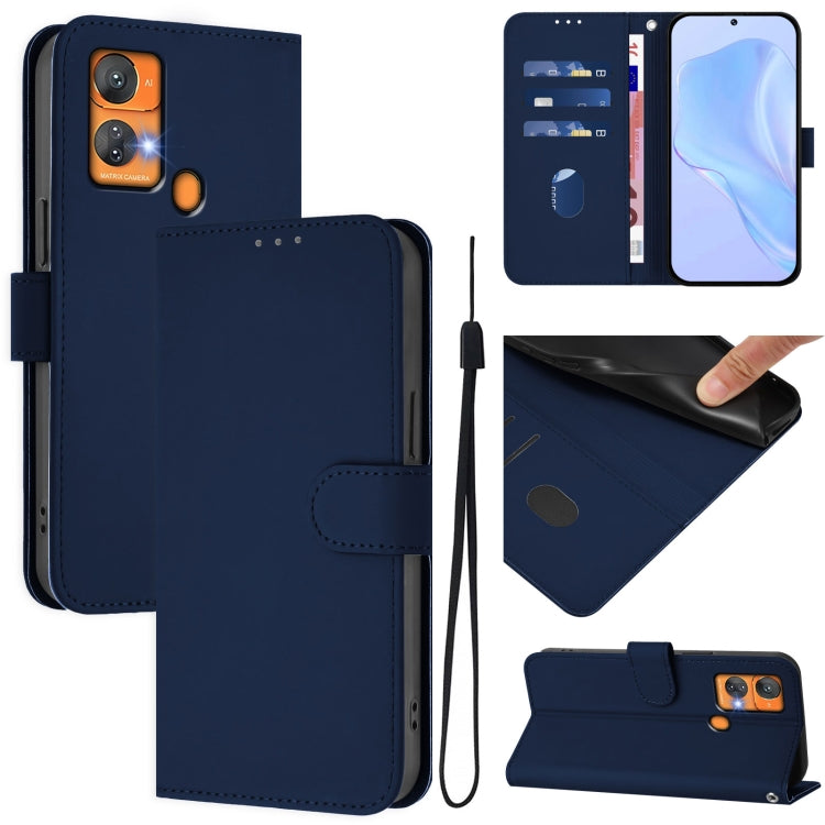 Funda de Piel Sintética con Cordón para Teléfono Oukitel C32 (Azul Oscuro)