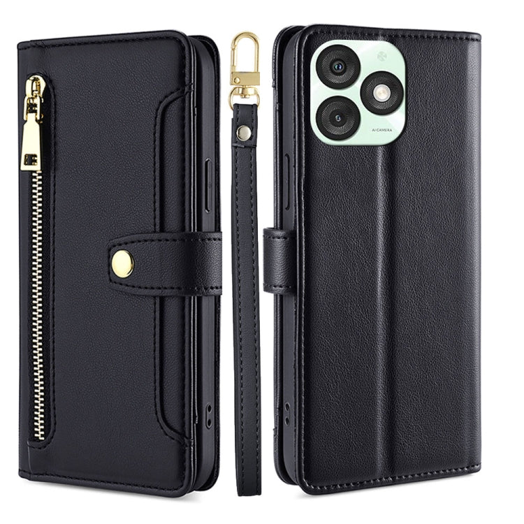 Funda de Cuero con Cremallera y Textura de Oveja para Teléfono Itel A50 4G (Negra)