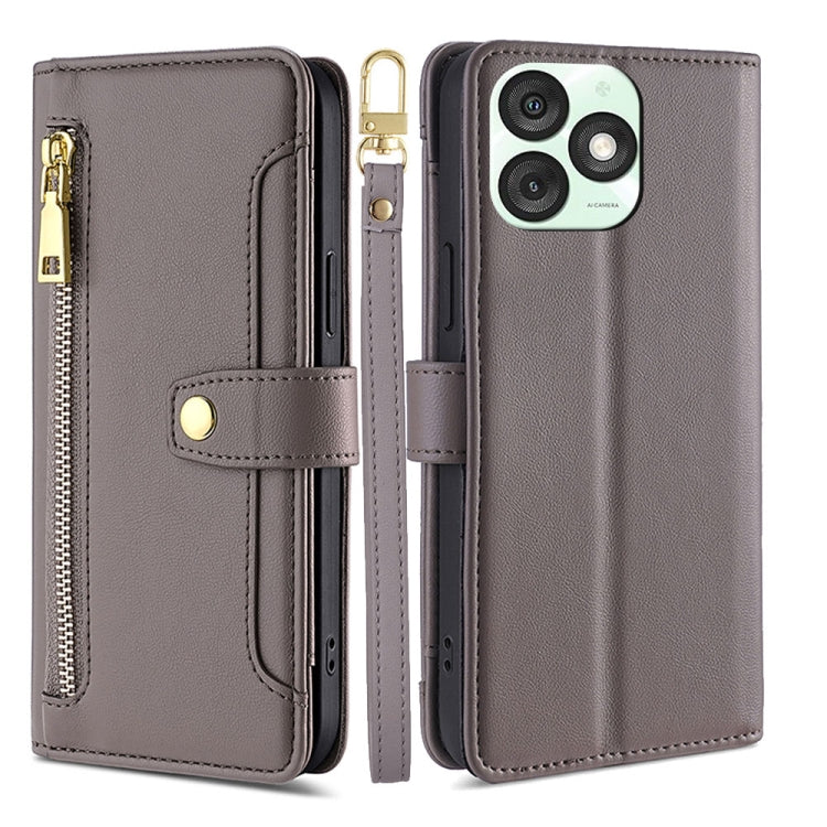 Funda de Cuero Tipo Billetera con Cremallera y Diseño de Oveja para Itel A50 4G (Gris)