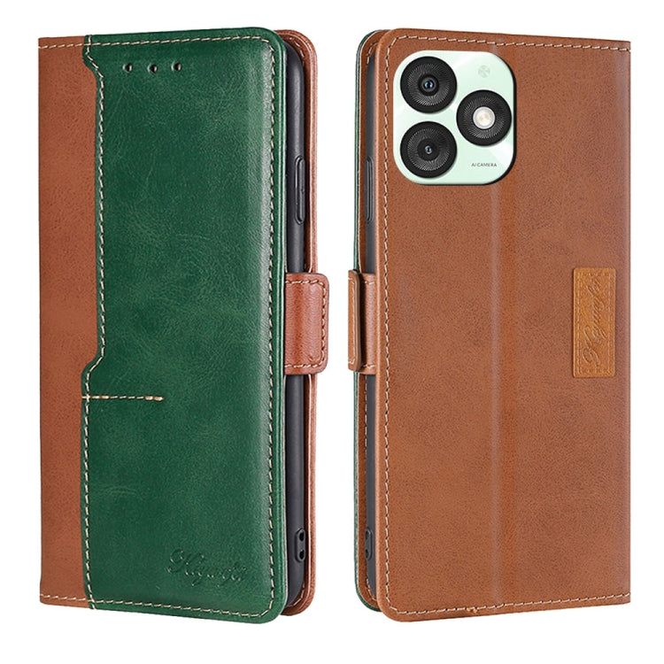 Funda de Cuero con Hebilla Lateral para Teléfono Itel A50 4G (Marrón Claro + Verde)